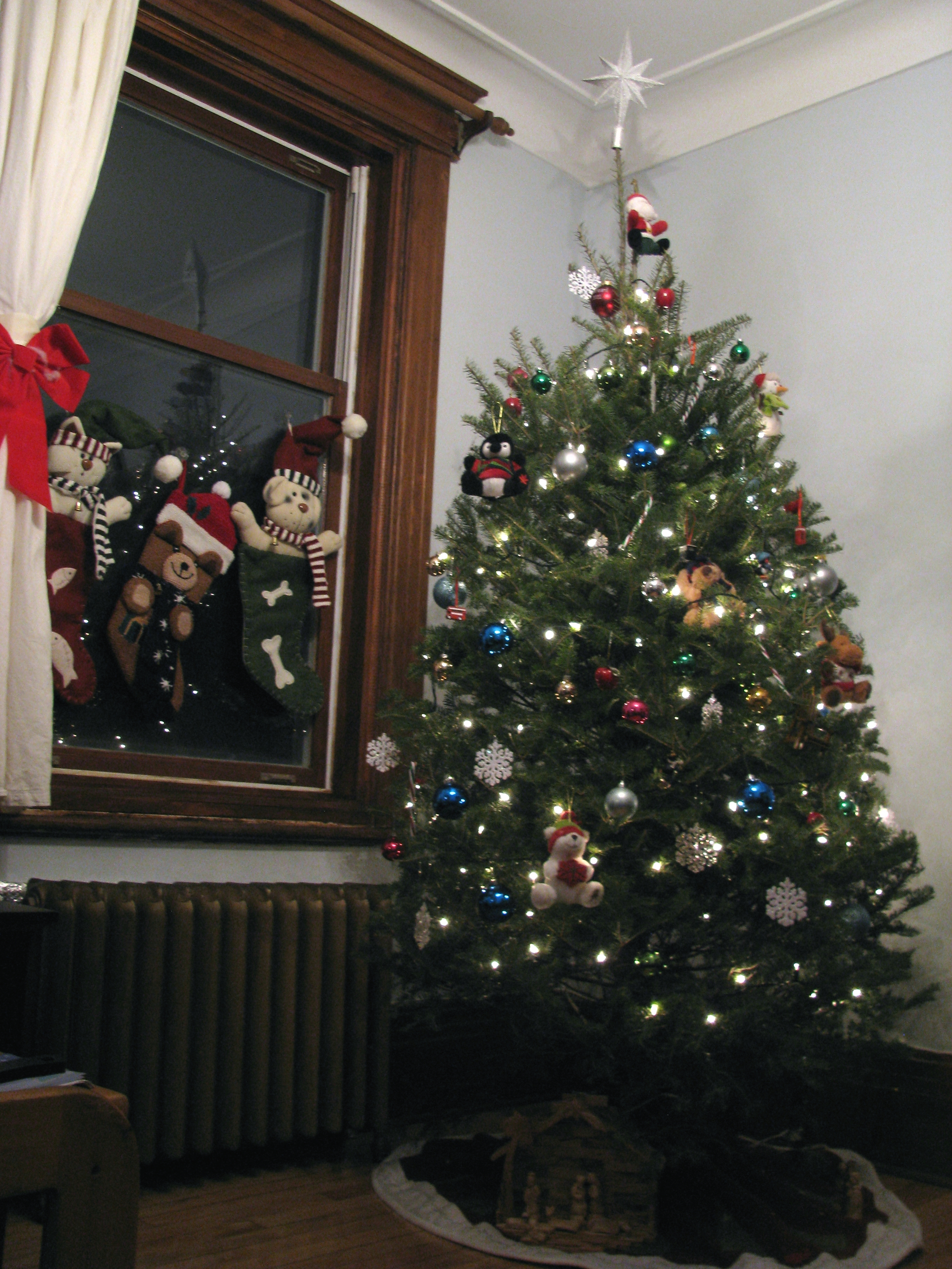 En profiter pour me lever dans une maison silencieuse, prendre une longue douche chaude, siroter mon café en robe de chambre en regardant la neige tomber et en appréciant son sapin de Noël allumé dans la pénombre du salon: bonheur.
